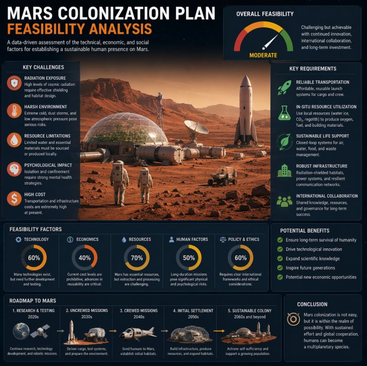 결국 현재 시점에서 내릴 수 있는 가장 균형 잡힌 평가는 이렇다. 단기적으로 대규모 이민 사회를 건설하는 것은 비현실적이지만, 단계적 장기 체류 기지를 만드는 시도는 충분히 추진 가능한 범위에 들어오고 있다. 무인 탐사, 자원 추출 실험, 자동화 건설, 소형 거주 모듈 실증, 제한된 인원 장기 체류라는 순서를 밟는다면 현실 가능성은 점진적으로 높아질 수 있다. 다시 말해 핵심은 한 번에 완성된 도시를 상상하는 것이 아니라, 실패를 견디며 확장 가능한 작은 시스템부터 구축하는 데 있다. 인류는 아직 준비가 완성되지 않았지만, 준비를 구체적 기술과 제도, 운영 경험으로 바꿔 나갈 수 있는 문턱에는 분명 도달해 있다.